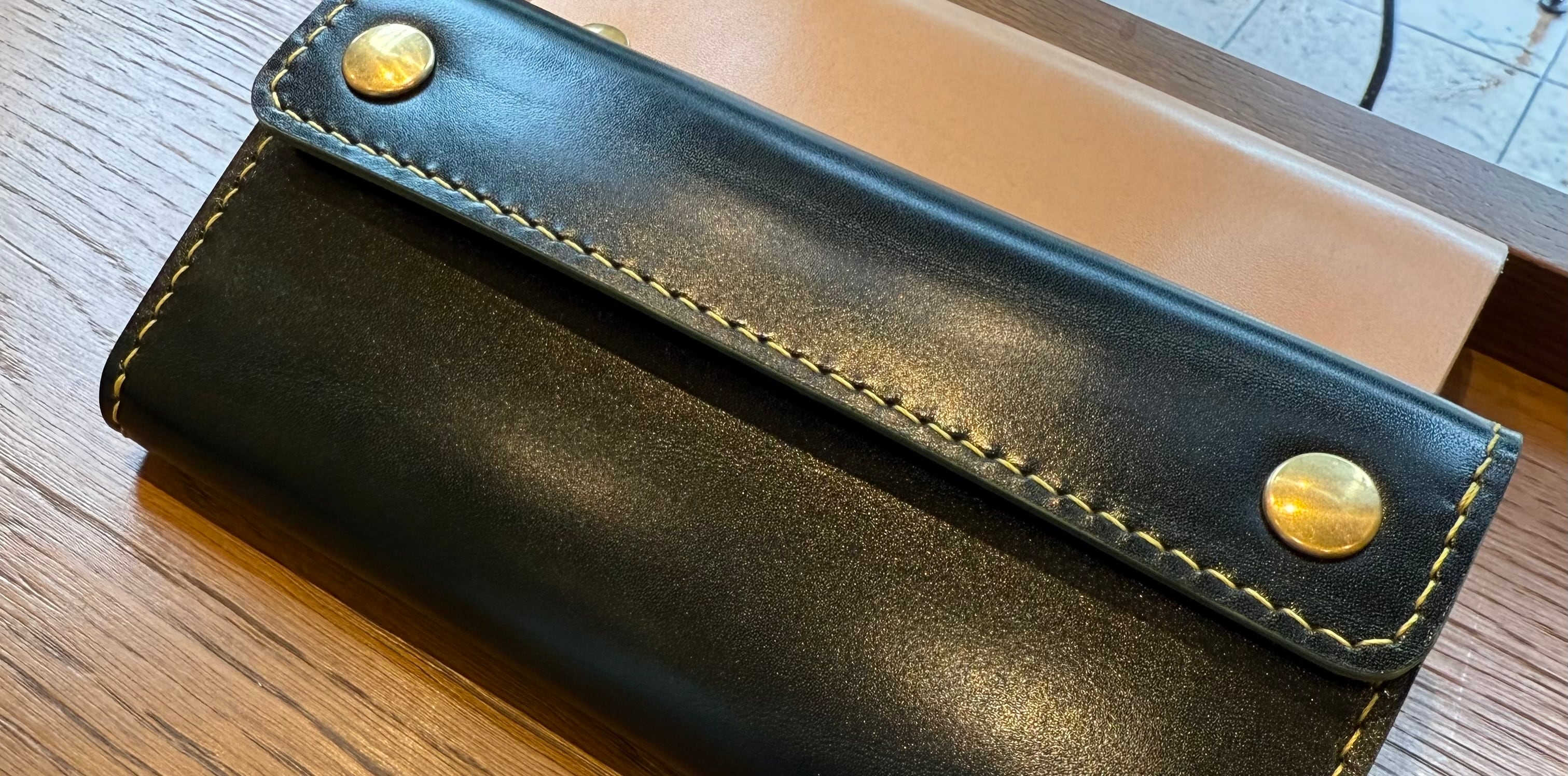 ルガトショルダーは、ベルギーの老舗タンナー「マシュア社」が製造する、植物タンニンなめしの高級レザーです。 美しいトラ模様と、艶やかな透明感のある仕上げが最大の特徴。染料仕上げによる深みのある発色で、一枚ごとに異なる表情を楽しめます。 使い込むほどに艶が増し、革が手になじむことで、自分だけのエイジングが進んでいきます。 ルガトは、革職人やレザーファンの間で高く評価される、まさに“一点物”の美しさを持つ素材です。 高級感・個性・経年変化を求める方に最適なレザーです。 主な特徴: • 素材: ルガトショルダー • 仕様: 札入れ、カードポケット×5、小銭入れ • カラー: グリーン • ステッチ: イエロー 当工房の製品はすべて日本製で、天然皮革を使用し、一つ一つ丁寧に手作業で制作しています。革の性質上、血筋、トラ柄、シワ、色ムラなどが見られることがありますが、これらは本革の証であり、唯一無二の個性としてお楽しみいただけます。 ご注文に際して: • 明らかな欠陥がある場合を除き、注文後のキャンセル、返品、交換はお受けできませんので、ご了承ください。